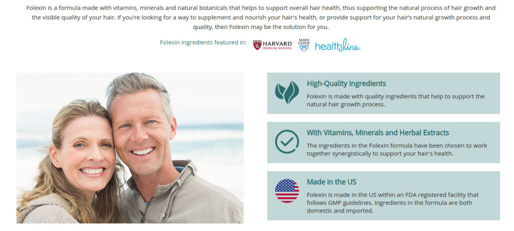 Folexin is a hair product, manufactured in the USA and readily available in accordance with FDA and GMP regulations.