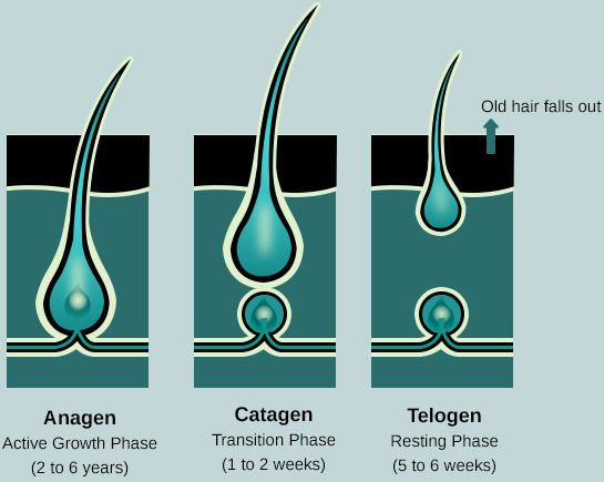 It is a stage that can last up to three months before the hair growth cycle begins again with the anagen stage. Each follicle goes through this cycle independently of the other hairs on the head.