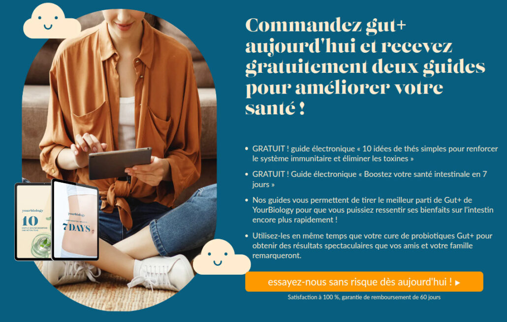 - YourBiology Gut+ est spécial en raison de ses ingrédients et de la combinaison optimale de bonnes bactéries ( probiotiques ) et de prébiotiques avec un taux de survie 250 fois supérieur aux probiotiques standards – selon le site officiel.